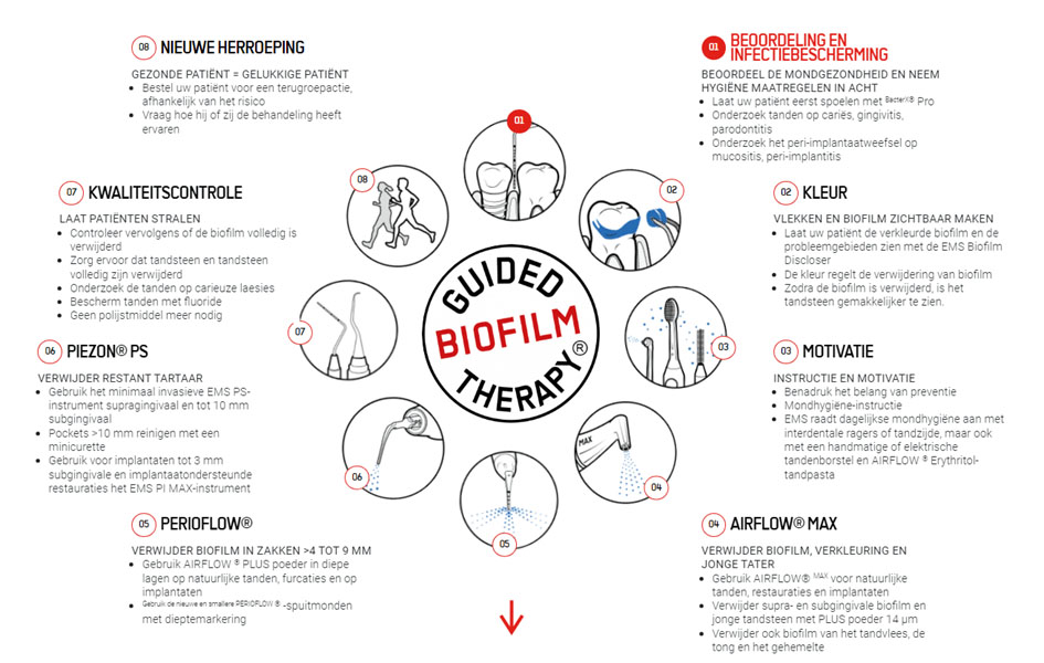 Guided Biofilm Therapie, is een procedure waarbij met behulp van een kleurstof